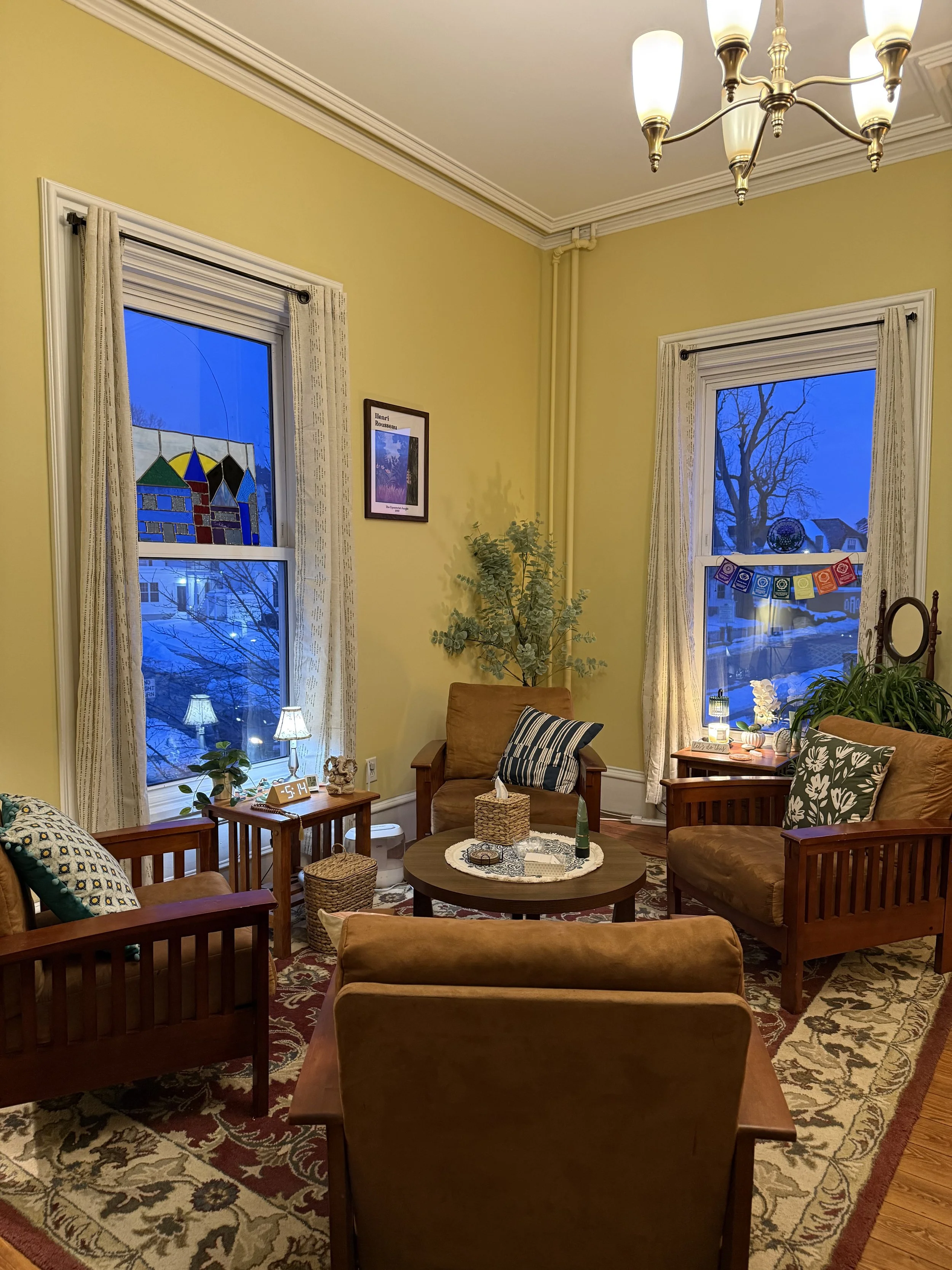 Therapy is conducted either in—person in my office, or by secure video telehealth service